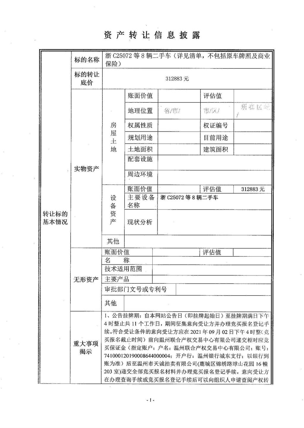 浙C25072等8輛二手車(chē)轉(zhuǎn)讓項(xiàng)目信息披露