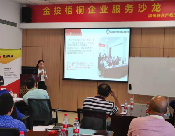 為助力溫州“兩個(gè)健康”先行區(qū)建設(shè),務(wù)實(shí)精準(zhǔn)高效做好“三服務(wù)”,扎實(shí)推進(jìn)區(qū)域資本市場(chǎng)發(fā)展,9月22日,溫州聯(lián)合產(chǎn)權(quán)交易中心有限公司舉辦了第八期金投梧桐企業(yè)服務(wù)沙龍活動(dòng),活動(dòng)為到場(chǎng)的小微企業(yè)開設(shè)資本對(duì)接系列課程《股權(quán)設(shè)計(jì)與股權(quán)激勵(lì)》總裁精品課?;顒?dòng)現(xiàn)場(chǎng),溫州聯(lián)合產(chǎn)權(quán)交易中心股權(quán)業(yè)務(wù)部負(fù)責(zé)人簡(jiǎn)要對(duì)中心目前開展的區(qū)域資本市場(chǎng)服務(wù)業(yè)務(wù)進(jìn)行了分享,并表示希望通過此次活動(dòng)拓寬企業(yè)培育渠道,更好助推企業(yè)成長(zhǎng)。