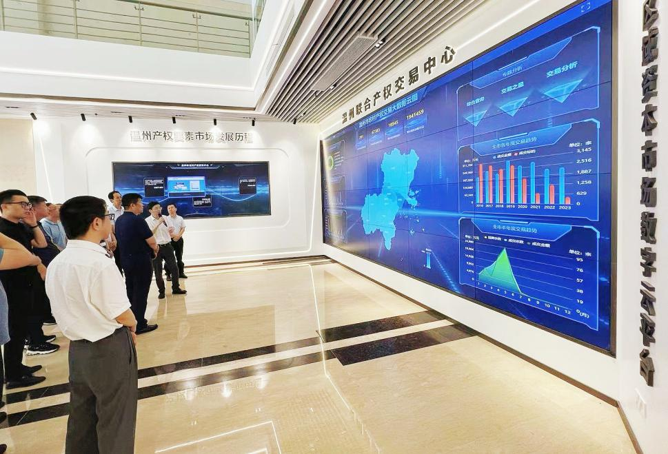 考察團(tuán)一行參觀了我中心“一站式”產(chǎn)權(quán)要素交易服務(wù)客廳,公司董事長應(yīng)建敬現(xiàn)場講解服務(wù)客廳內(nèi)溫州產(chǎn)權(quán)要素市場發(fā)展歷程、溫州區(qū)域資本市場數(shù)字云平及業(yè)務(wù)服務(wù)長廊,向考察團(tuán)詳細(xì)介紹了我中心農(nóng)村產(chǎn)權(quán)交易云平臺建設(shè)及農(nóng)村產(chǎn)權(quán)交易規(guī)范化工作。